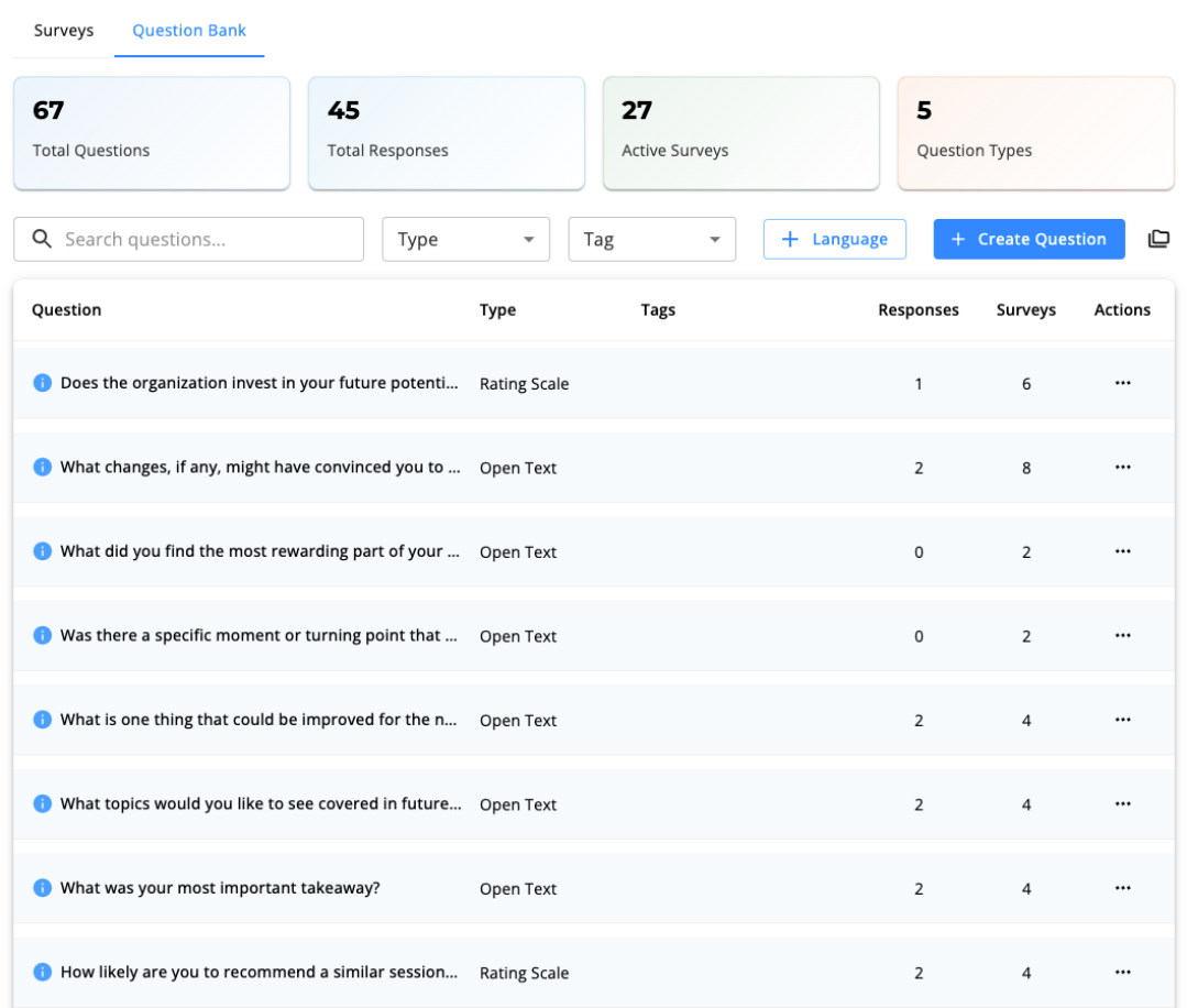 Gain insights into individual question performance across all your surveys to see a trend and refine future feedback collection.