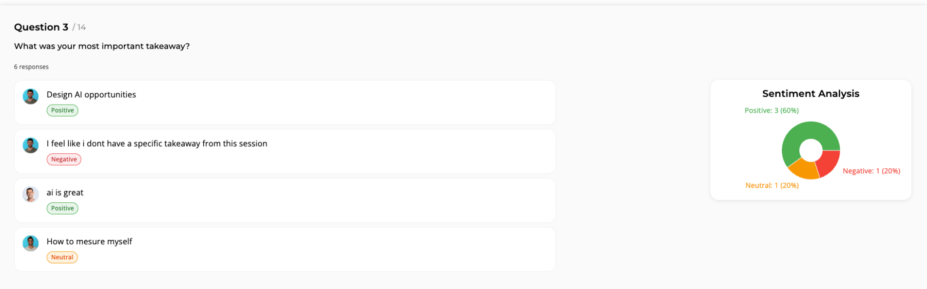 The primary use case is gathering feedback on learning activities, especially events where companies invest significant resources. In many cases, Juno replaces tools like CultureAmp or SurveyMonkey — becoming the single platform for engagement,